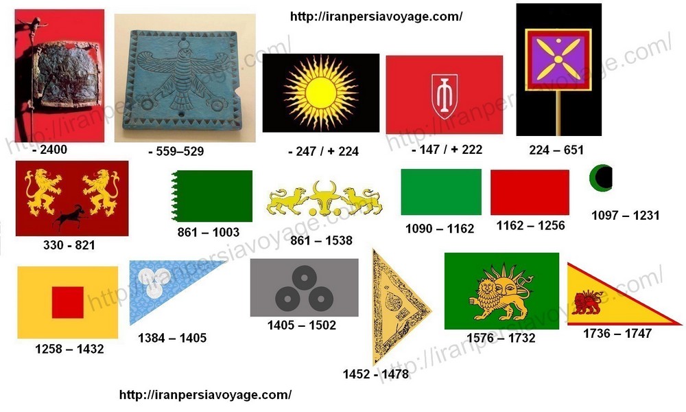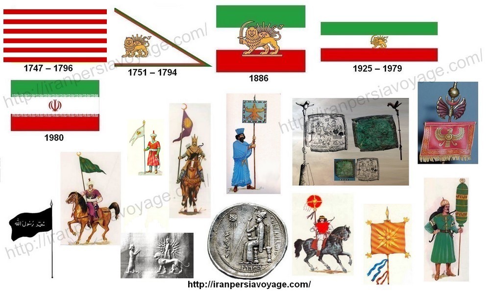 Photos 1,2: Old flags of Iran to present (composed by IranPersiaVoyage)