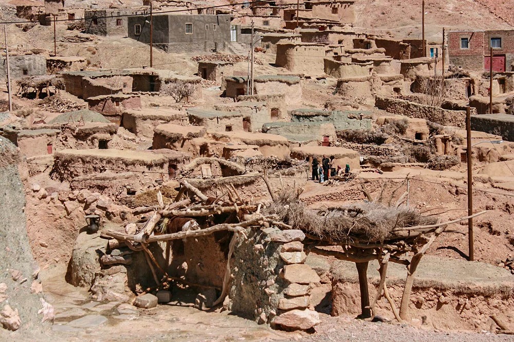 Dans le passé, les portes étaient faites d’épines et de buissons du désert, mais au fil du temps, elles ont été remplacées par du bois et des clous. Les murs des maisons sont en pierre et en boue et le plafond est recouvert de troncs d’arbre et d’arbustes locaux.