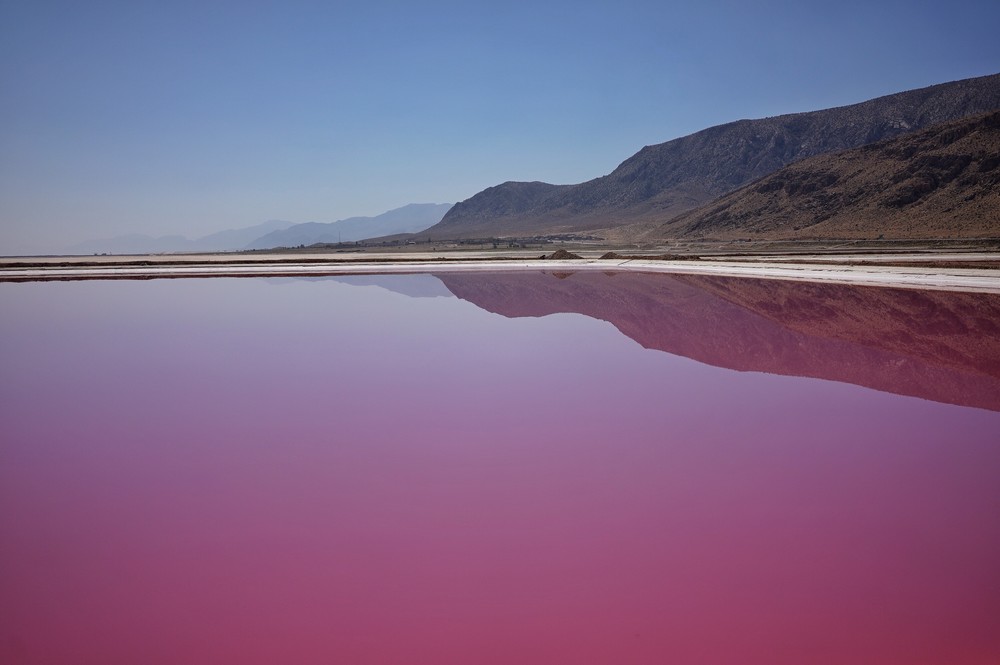 The pinkish Maharloo salt lake in southeast of Shiraz, Iran.