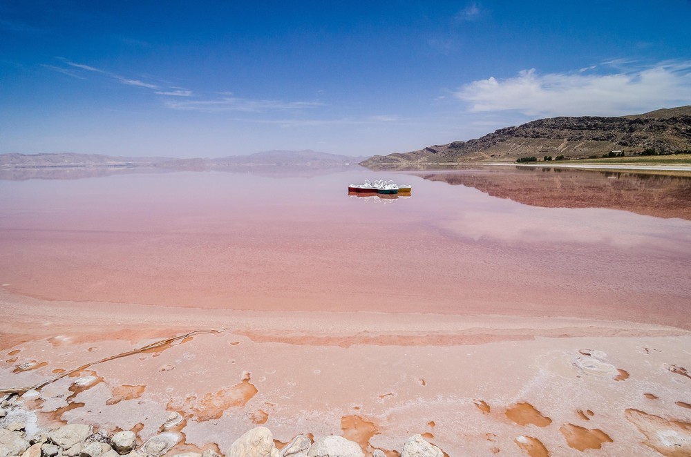 Visiter le lac Maharloo au milieu de l’été et préparez-vous à découvrir le phénomène unique qui transforme ce lac ordinaire en un spectacle rose.